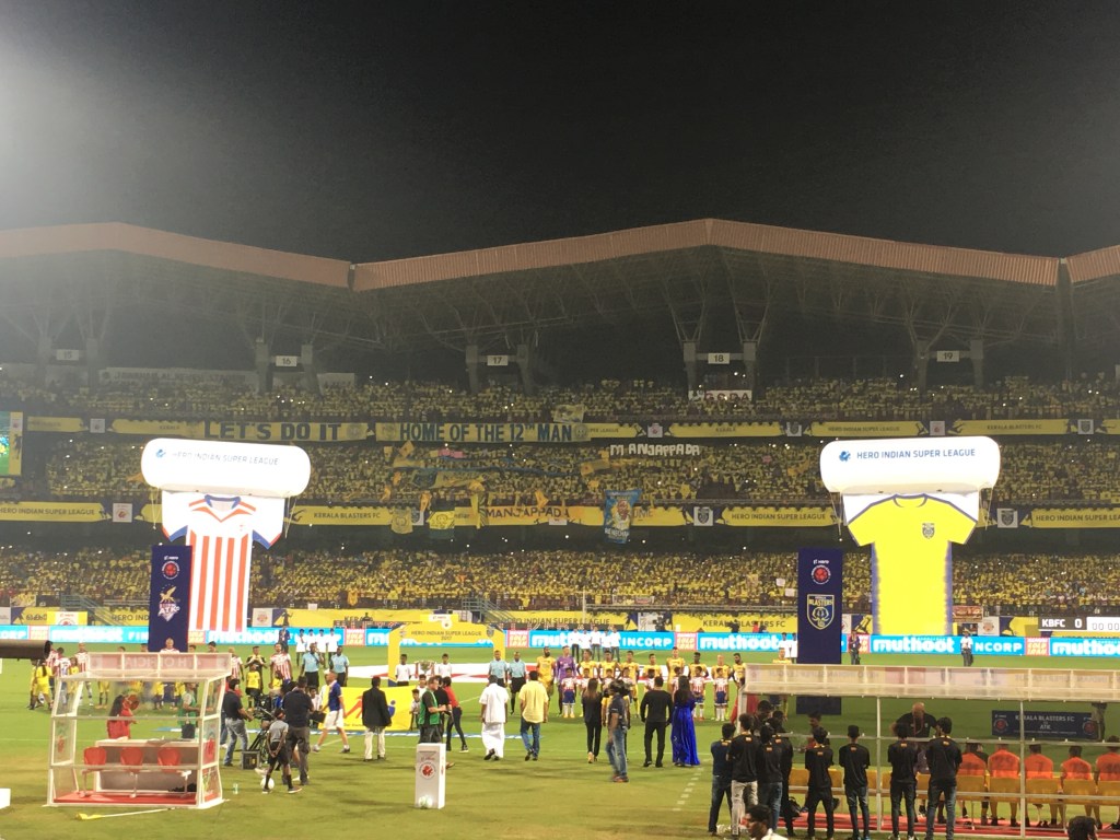 It turns out the owner of the academy I am working for knows people in high places and wangled me free tickets for the Indian Super League opener between Kolkata and Kerala. Prior to this I had a few days wandering the city and what hit me the most was how hot it was (an average of 30 degrees), and I couldn’t help thinking that football here would be a tough nut to crack.